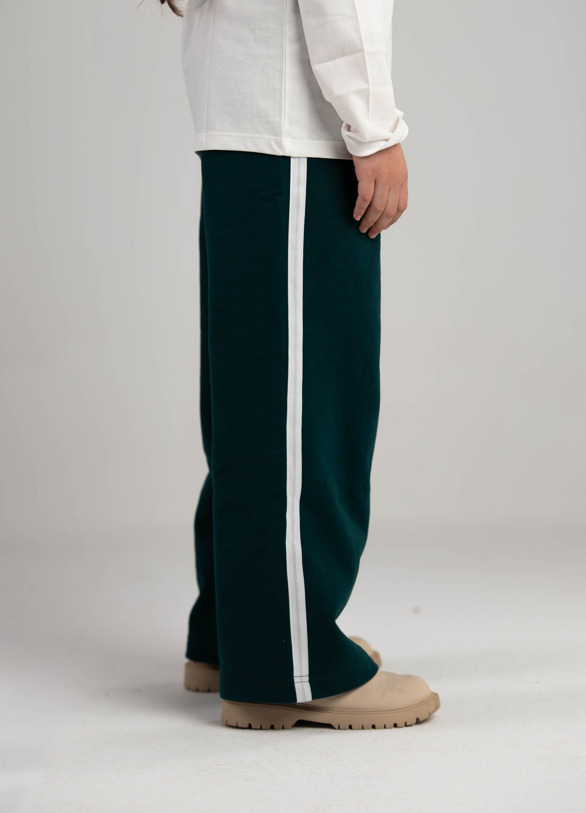 Our green cotton pants are designed for everyday comfort. Made from soft, breathable fabric, and finished with a crisp stripe down the side, they're perfect for playtime, outings, and everything in between.